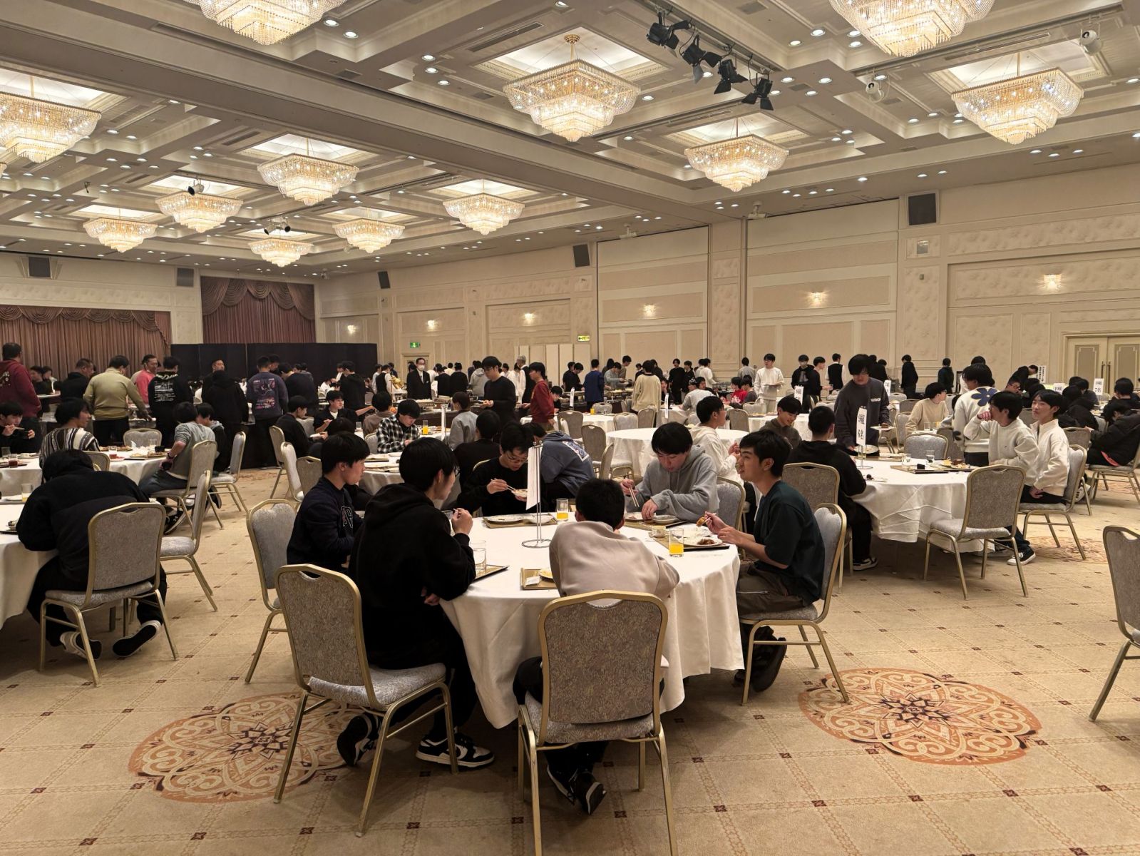 散策後は、宿泊先である札幌市内のホテルへと移動し、ホテルではみんなで食事とスイーツバイキングを味わいました。